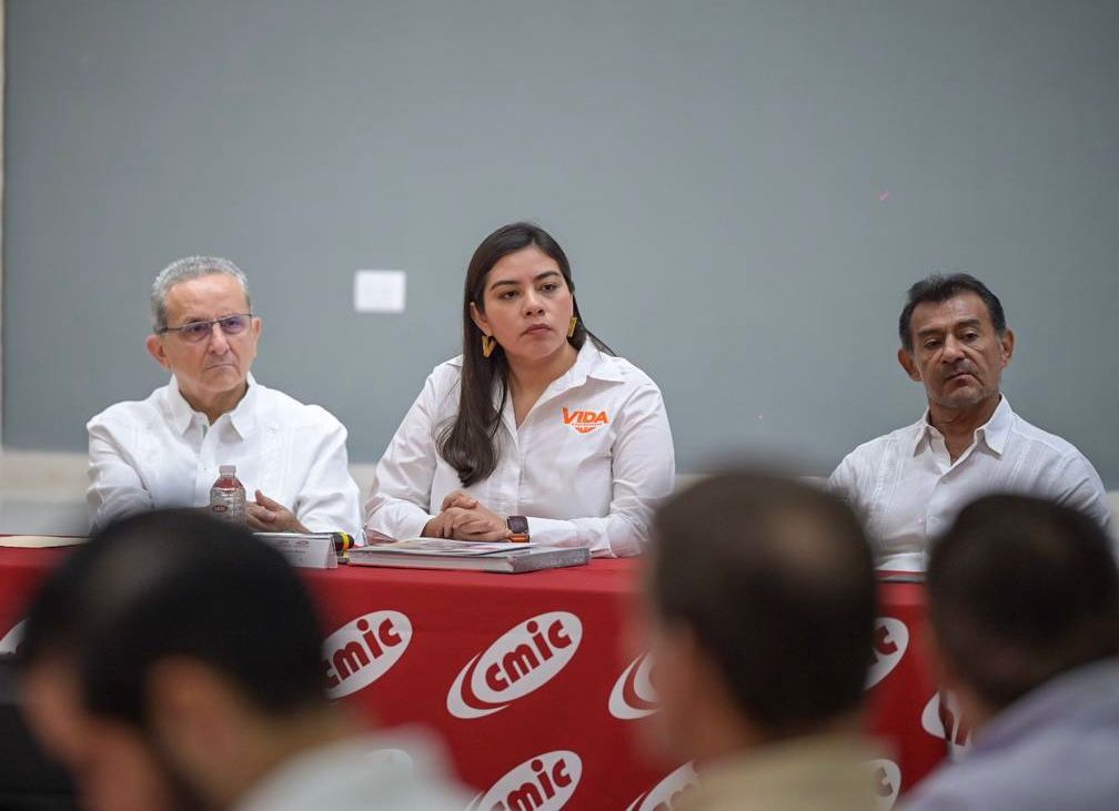 Vida Gómez Herrera, candidata de Movimiento Ciudadano a la gubernatura de Yucatán, expuso a integrantes de la Cámara Nacional de Industria de la Construcción que preside Raúl Monforte González, su proyecto de gobierno que contará con la visión, dirección y supervisión de expertos.