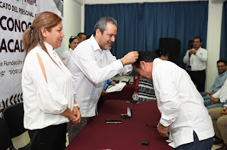 Luego de recordar que estos actos también son alusivos a los 45 años del Sindicato del Personal Académico, el rector Carlos Faustino Natarén Nandayapa expresó su reconocimiento a la labor de cada uno de los docentes que con su ejemplo y dedicación forman a los profesionales del futuro.