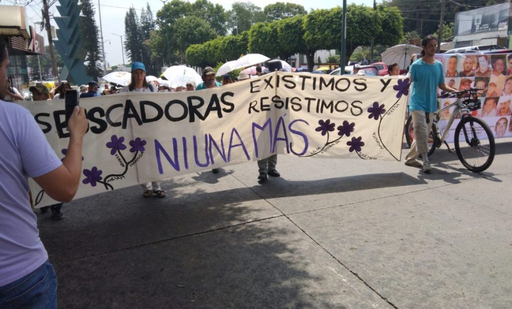 La avenida 20 de noviembre fue cerrada a la circulación hasta el centro de esta capital por donde marcharon diversos colectivos de búsqueda de desaparecidos en el marco del Día de la Madre.