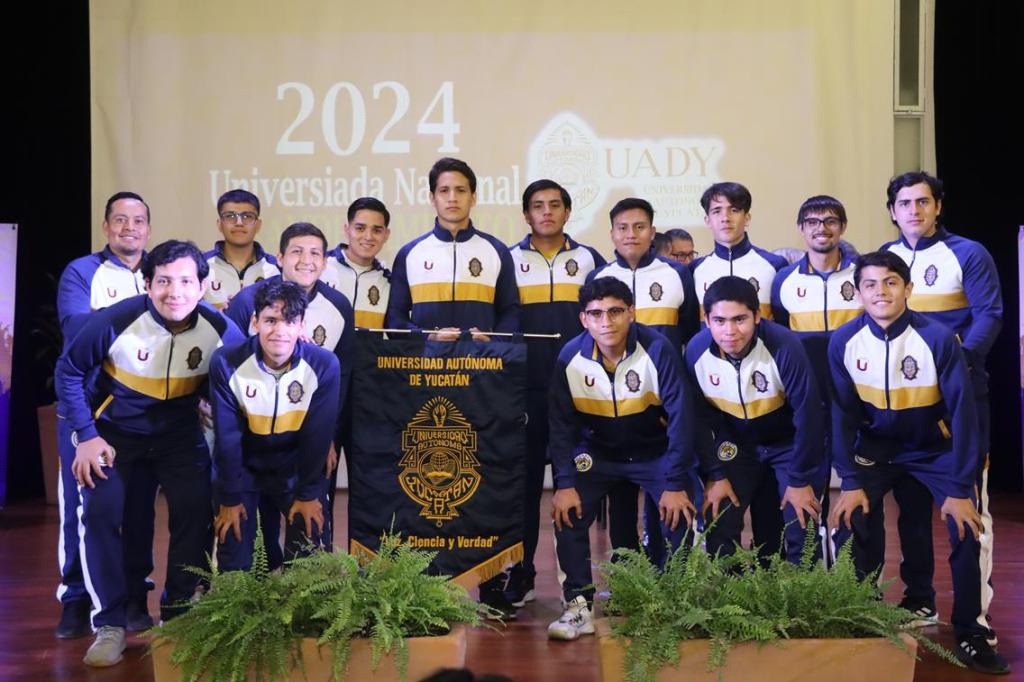 El rector entregó el estandarte UADY a 5 destacados jóvenes deportistas que representaron a la delegación en la ceremonia: María Karina Sánchez Uribe de Karate (medallista de Bronce UN23 y estudiante de la Facultad de Medicina); Luis Antonio Mejía Chávez de Taekwondo Pomsae (medallista de Plata UN23 y estudiante de la Facultad de Contaduría y Administración).