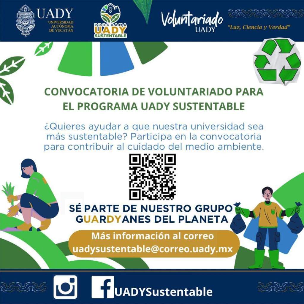 Con la finalidad de sumar esfuerzos a favor del cuidado al medio ambiente y abonar a las actividades en la materia de la Universidad Autónoma de Yucatán, el programa UADY Sustentable invita a estudiantes de bachillerato, licenciatura y posgrado a ser parte de “GUArDYanes del Planeta”.