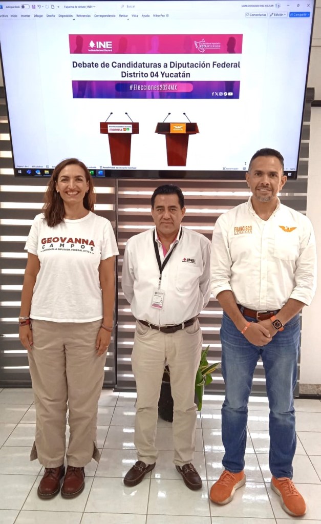 La sede del Instituto Nacional Electoral (INE) en Yucatán, será el lugar del debate entre la candidata de la Coalición “Sigamos Haciendo Historia”, Geovana Cecilia Campos Vázquez y el candidato de Movimiento Ciudadano, Francisco Javier Cardosa Torres por el 04 Distrito Electoral Federal, el próximo 25 de mayo.