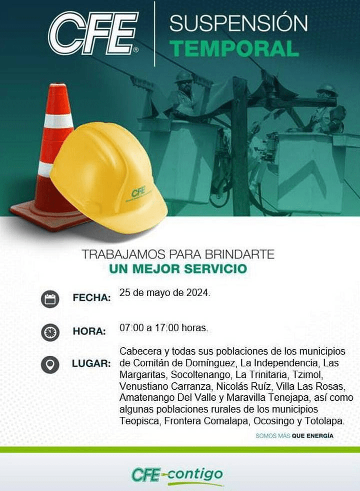 La Comisión Federal de Electricidad lanza comunicado de apagón en municipios de Chiapas para prevenir a la población
