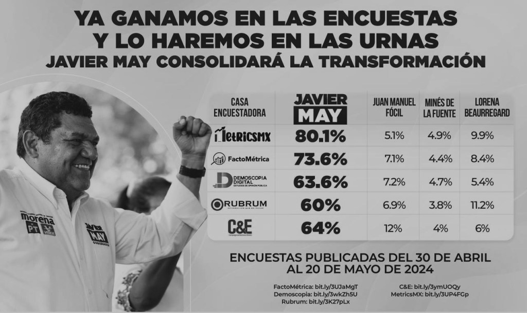 Por ello en la burbuja de May llaman la copia del Verde Ecologista del seis de seis, al tiempo de calificar de oportunista la posición del dirigente del Verde, Miguel Vélez del seis de seis, “al estarse montando en la figura de la doctora Sheinbaum, de May”.NUEVO BOOMEl municipio de Paraíso dará un vuelco en lo político y en lo económico: en lo primero, se percibe en el ambiente una victoria del candidato de MC a la alcaldía de Paraíso, Alfonso Baca Sevilla.
