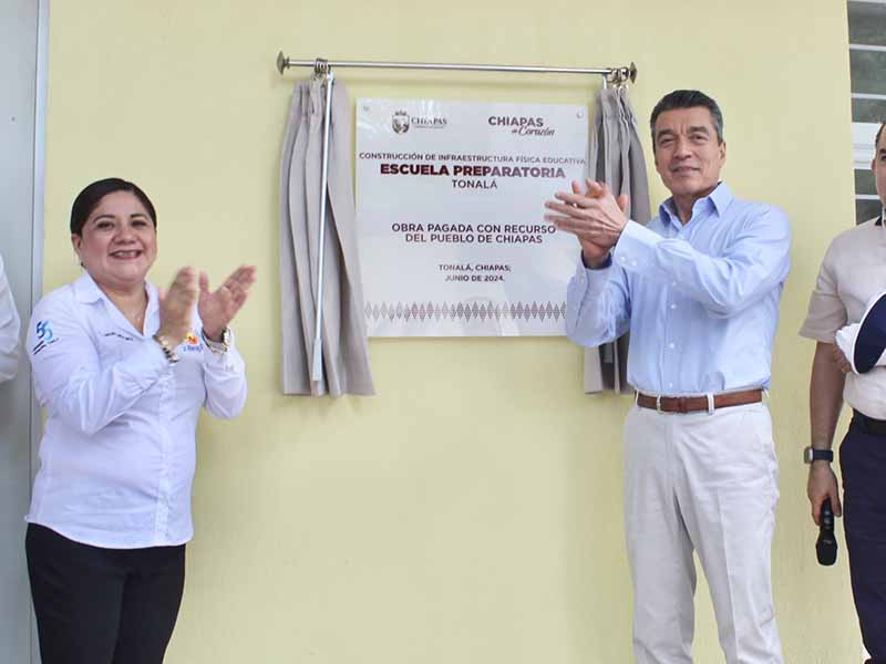 En el municipio de Tonalá, el gobernador Rutilio Escandón Cadenas llevó a cabo la inauguración de infraestructura educativa de la Escuela Preparatoria “Tonalá”, donde destacó que el gobierno de la Cuarta Transformación le apuesta a la educación, porque esto garantiza a la niñez y a la juventud tener una mejor preparación académica para cumplir sus sueños y aspiraciones profesionales.