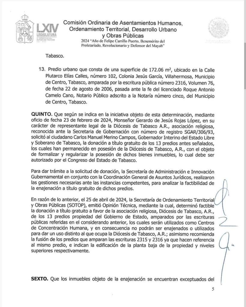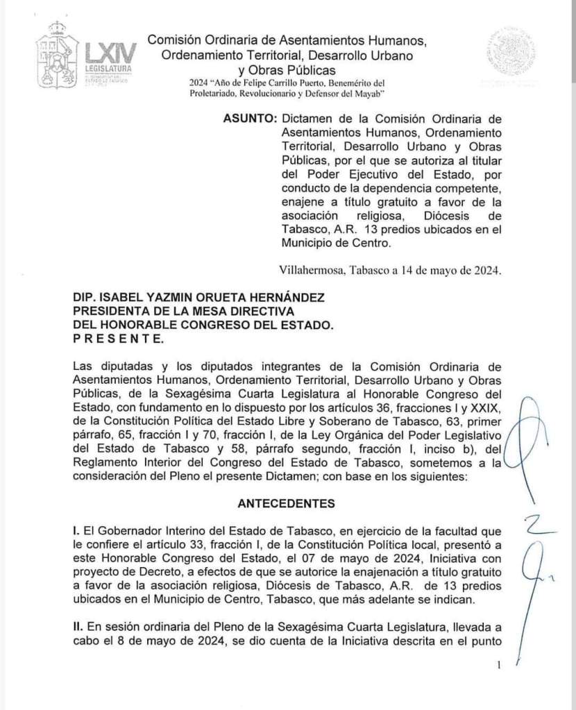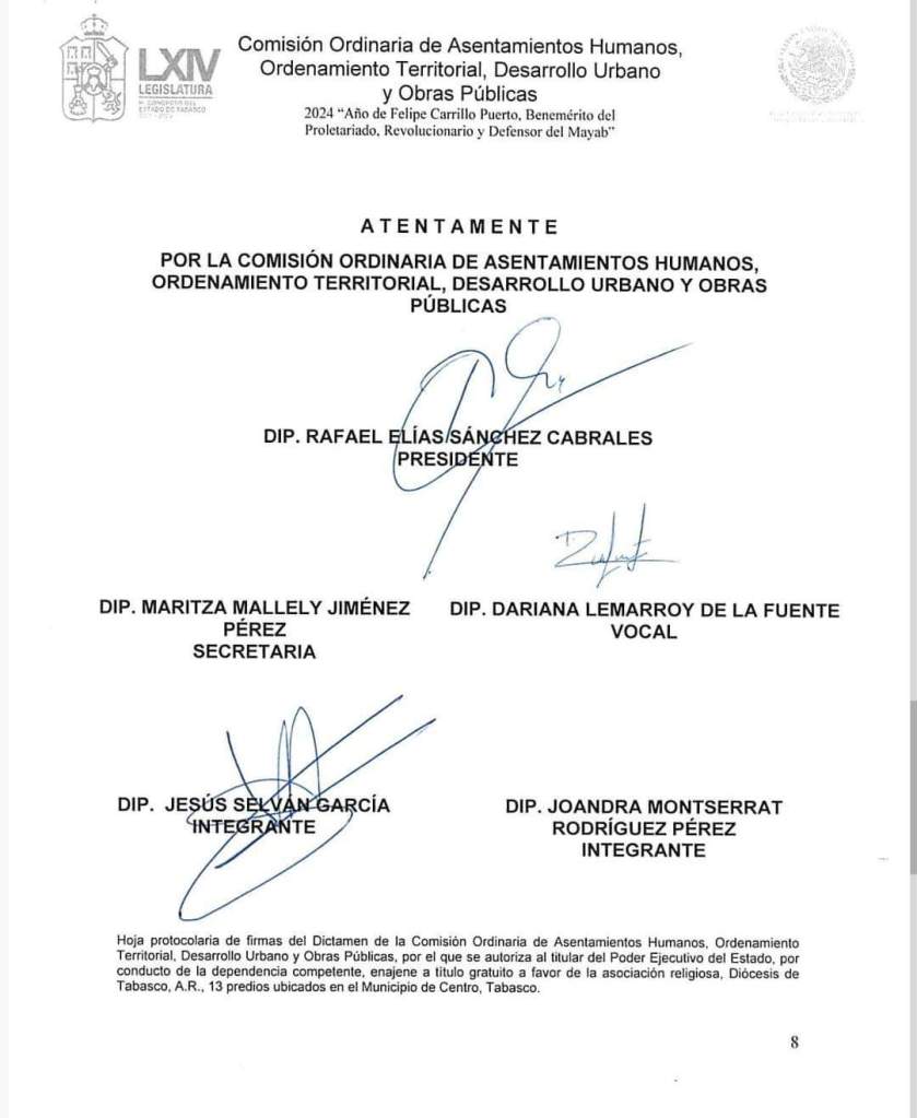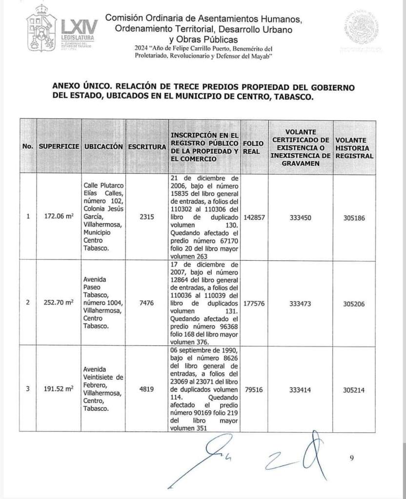 Ahora el “interino” y Benjamín, con el visto bueno del anterior y del próximo ocupante del Palacio de Gobierno, consuman un saqueo más al patrimonio común de los tabasqueños: disponer la enajenación a titulo gratuito de 13 predios de alta plusvalía, ubicados en Paseo Tabasco y la avenida 27 de febrero, a favor de una asociación religiosa. La mayoría, seis, comprados en 2006, siendo gobernador Manuel Andrade y obispo Benjamín Castillo. Aunque, hay que enfatizarlo, el promotor de la malversación, tipificada como peculado, fue el extinto Rafael García González, en el sexenio de LRW.
