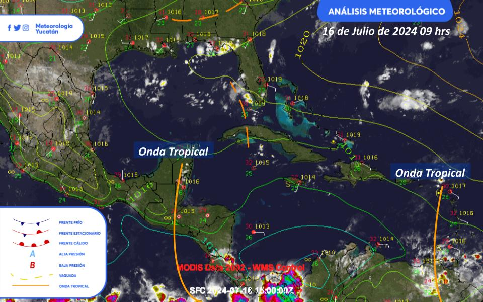 Se prevé un combo meteorológico tormentoso formado por vaguada y ondas tropicales para los próximos 3 días con tormentas fuertes dispersas (25 a 50 mm) a puntuales muy fuertes (50 a 75 mm) en el noreste, oriente, centro, occidente, sur de Yucatán, norte, centro, sur, suroeste de Campeche, centro de Quintana Roo y occidente, centro, sur, oriente de Tabasco, así como lluvias de menor intensidad en el resto de la región.