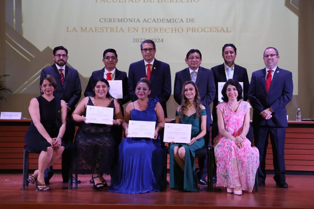 Durante la ceremonia académica se hizo entrega de reconocimientos a los mejores promedios: William Jesús Solís Ávila de la Maestría en Derecho Procesal Penal Acusatorio; Jacqueline Medina Mena por la Maestría en Derecho Procesal Civil y Familiar; y Ramón Jesús Osorio Vázquez de la Maestría en Derecho Procesal Constitucional.