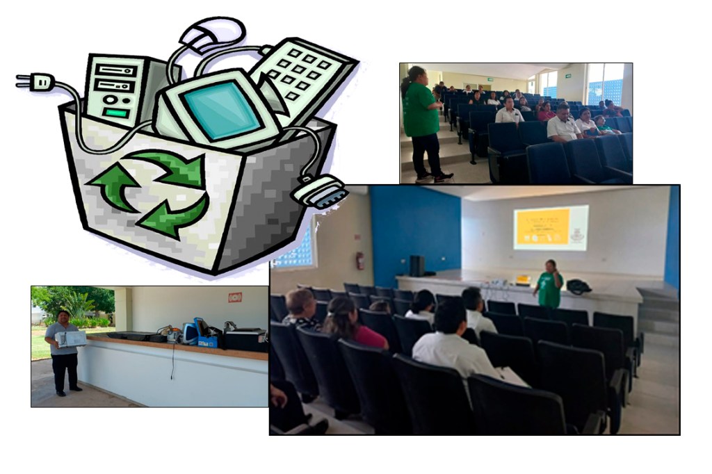 Dentro de esta estrategia, en conjunto con la Unidad de Desarrollo Sustentable del Ayuntamiento de Mérida, impartieron una plática sobre el reciclaje y correcto manejo de los desechos electrónicos, además de una jornada de acopio de esta clase de equipos inservibles.