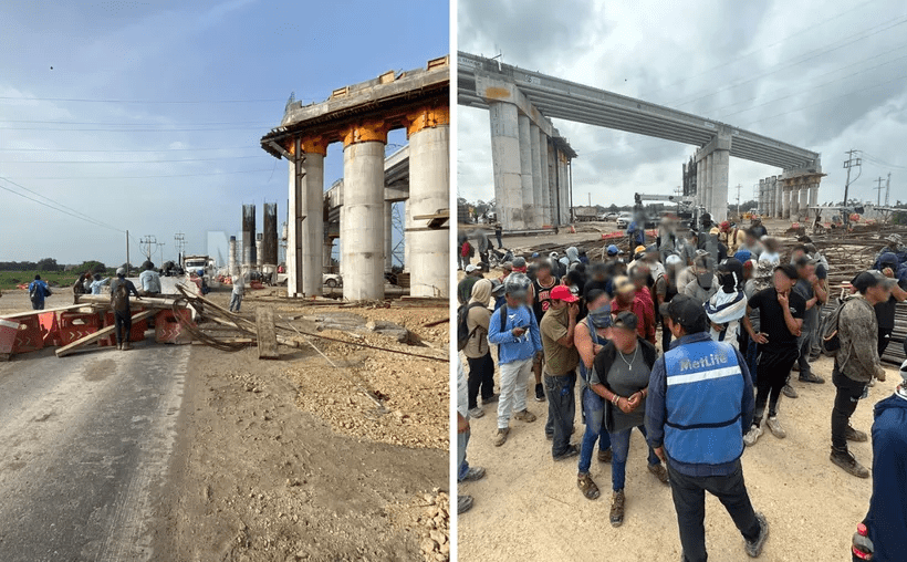 En la mañana de este lunes, alrededor de 200 trabajadores del Tren Maya comenzaron un bloqueo en la carretera Chetumal-Escarcega y Chetumal-Cancún, debido a adeudos salariales.
