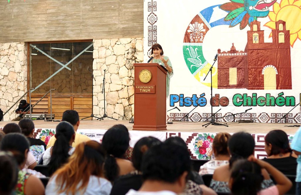 Zapata Ucán dijo que para Tinum la cultura es uno de los pilares «estamos muy contentos de ser sede del cierre regional de Cultura para Todos, agradecemos el apoyo de la Secretaría de la Cultura del estado. Este pueblo llamado Pisté de Chichén Itzá agradece por acompañarnos con el deseo de que nunca dejen de hacer arte en sus comunidades».