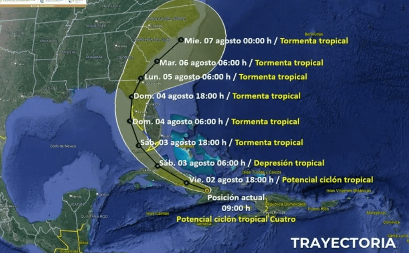 En caso de que el potencial ciclón tropical cuatro se intensifique y alcance vientos entre 64 y 117 km/h, será nombrado «Debby». Las autoridades seguirán proporcionando actualizaciones conforme se desarrollen los eventos.