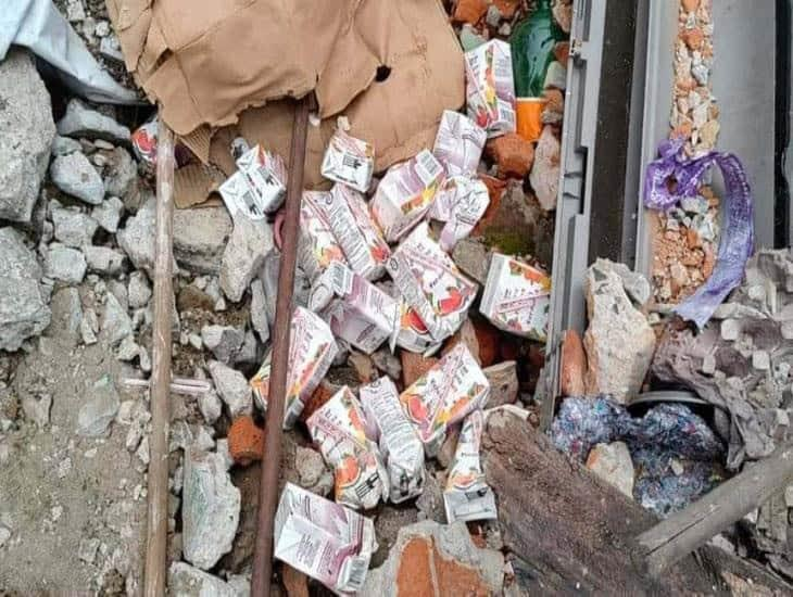 Decenas de cajitas de leche con logotipos del Gobierno Estatal fueron encontradas en un basurero clandestino, ubicado en el fraccionamiento Los Pinos, en la zona norte del Puerto de Veracruz.