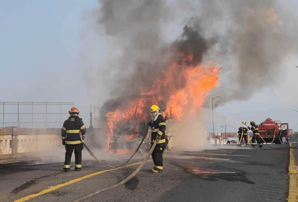 Este hecho generó gran susto entre la población que a bordo de sus vehículos circulaba sobre este puente Morelos, en el centro de Veracruz, donde el camión comenzó a incendiarse quedando a la mitad del puente.