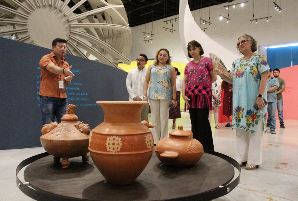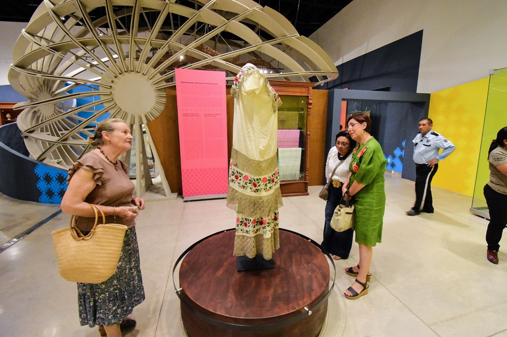 La titular de la Secretaría de la Cultura y las Artes (Sedeculta), Loreto Villanueva Trujillo, recorrió la muestra con la que aumentó la oferta cultural del lugar al adherirse emblemáticas piezas entre ellos joyas, huipiles, máscaras, vasijas, árboles de la vida, jaguares, rebozos, estandartes de gremios y cofres.