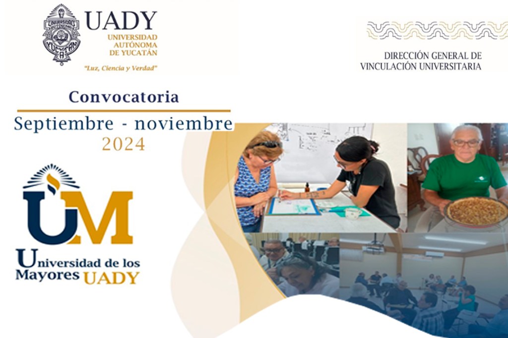 La Universidad de los Mayores (UM) de la Universidad Autónoma de Yucatán (UADY) abre su convocatoria para los talleres correspondientes al periodo septiembre-noviembre 2024, diseñados especialmente para personas de la tercera edad que deseen seguir aprendiendo, creciendo y conectándose con otros.
