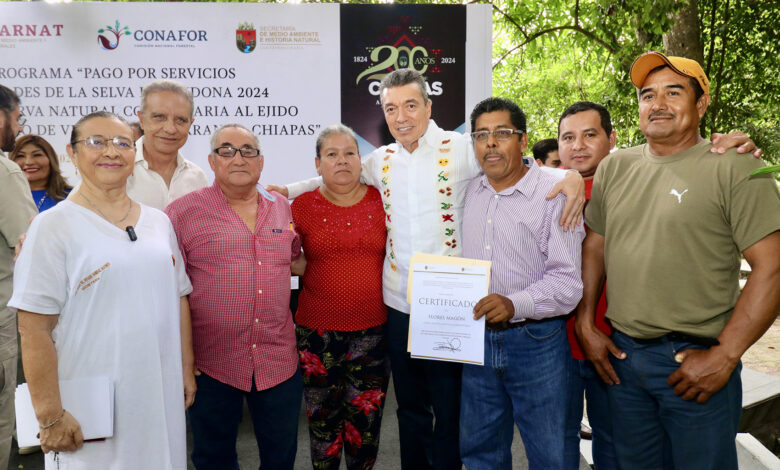 En la entrega de recursos del Programa Pago por Servicios Ambientales en Comunidades de la Selva Lacandona 2024, el gobernador Rutilio Escandón Cadenas reconoció el extraordinario esfuerzo que las mujeres y los hombres lacandones llevan a cabo en la misión de cuidar y conservar el agua, la flora y la fauna de esta gran reserva natural, considerada una de las más importantes de México y del mundo.