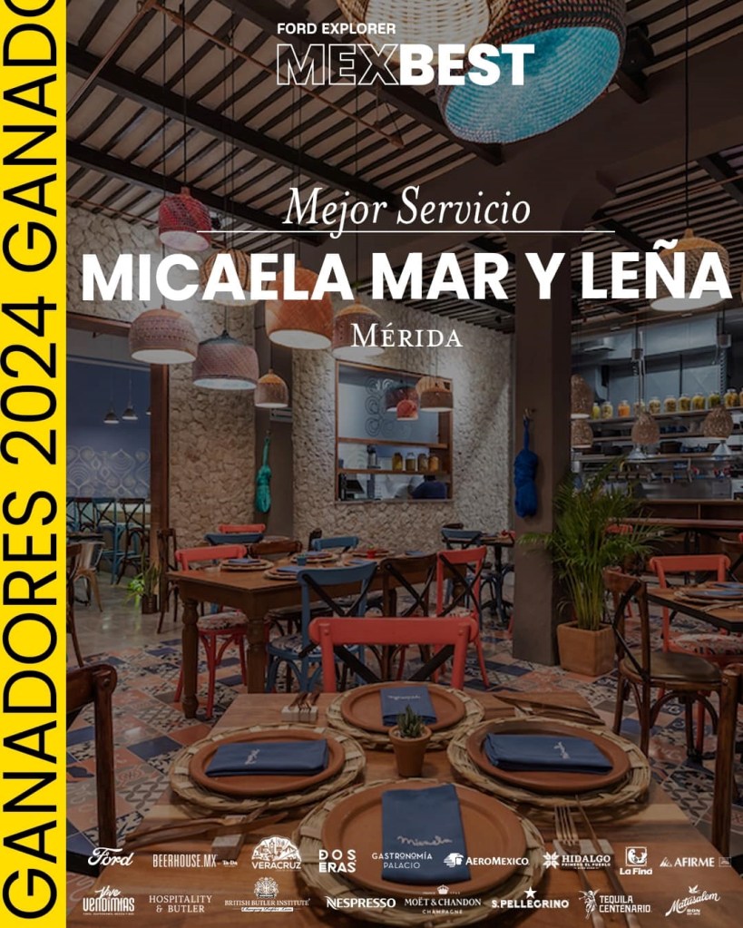 El restaurante Micaela Mar y Leña de Mérida obtuvo la presea por Mejor Servicio en Gastronomía del país en los Premios MexBest 2024, el cual reconoce a los exponentes del sector gastronómico y hotelero mejor valorado por el sector, comensales y viajeros que disfrutan de los destinos de la República Mexicana.