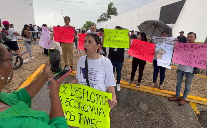 Además, los manifestantes contrarios a la Reforma Judicial se hicieron notar con pancartas que decían: “Se desploma la economía adiós T-Mec”, “Sin justicia federal no habrá democracia” y “Queremos una reforma judicial justa e integral”.