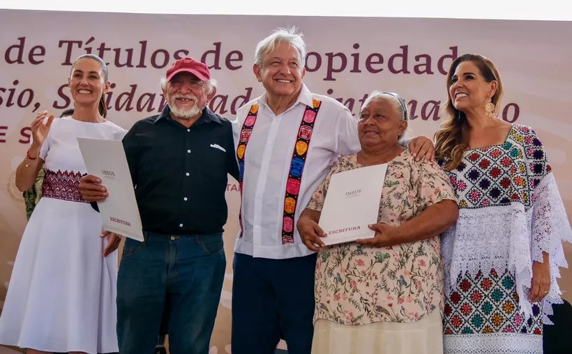 Tras una lucha de 30 años, habitantes de la colonia Luis Donaldo Colosio Murrieta recibieron de manos del presidente Andrés Manuel López Obrador y la gobernadora Mara Lezama; sus títulos de propiedad con los cuales alcanzaron la certeza jurídica sobre sus terrenos.