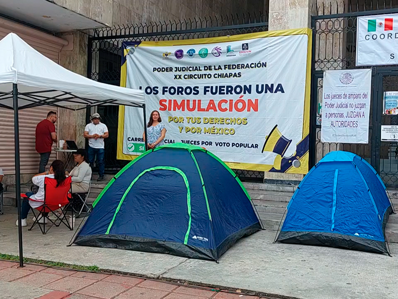 Afuera del Congreso del estado continúa la protesta de los trabajadores del Poder Judicial de la Federación (PJF) en Chiapas.