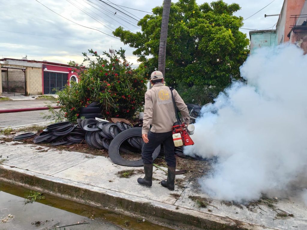 La Secretaría de Salud no se da por vencida en la batalla contra el dengue. Comprometidos a mantener la lucha durante todo el año, siguen llevando acciones de nebulización en Escárcega, Campeche y Carmen, por lo que familias deben seguir abriendo sus puertas y ventanas.