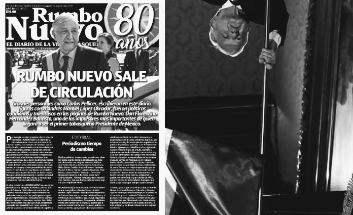 DE SALIDA. El anuncio hecho por el director del Diario Rumbo Nuevo, Jorge Alberto Javier Quero del cierre de su periódico, es sin lugar a duda un golpe severo al tan depreciado oficio del periodismo. Y lo decimos porque este periódico calificado como el decano de la comunicación en Tabasco no debería de correr por la mala suerte del cierre, pero las circunstancias políticas y económicas hacen que él dueño haya decidido mejor bajar las cortinas a enfrentar la difícil situación que se avecina, según el editorial escrito. Actuando de una manera totalmente empresarial decide aplicar la frase de que empresa que no deja dinero no es empresa y apaga la rotativa hasta nuevos tiempos, si es que existen. Ahora solo quedan seis medios impresos, Presente, Avance, Sol de Tabasco, Tabasco Hoy, el Criollo y Novedades. Todos ellos luchando desde hace seis años por encontrar mejores tiempos, no se rajaron a la primera, sino por el contrario han sorteado tempestades, porque primero esta la labor informativa. Adiós al periódico icónico, creado por grandes periodistas como Manuel Antonio Romero, Florentino Hernández Bautista, Ramón Hipólito Hernández Aguayo y Jorge Alberto Javier Quero…