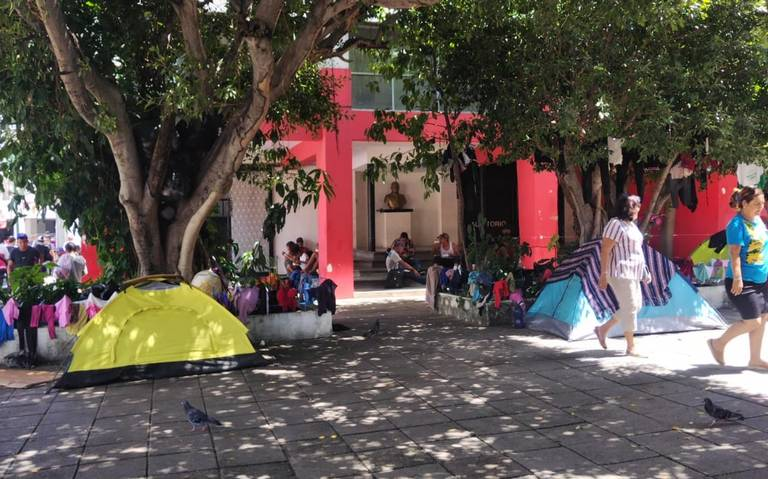 Los migrantes venezolanos instalados en el Parque Santo Domingo de Guzmán en Tuxtla Gutiérrez agradecen la hospitalidad de la población. Gabriel Cardona comenta que la gente los ha tratado bien. Él llegó con su familia hace menos de un mes y dice que están bien, aunque duermen en el piso de la plaza, donde han colocado colchas y almohadas.