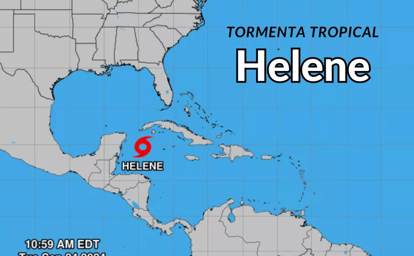 Según los últimos informes, la tormenta tropical ‘Helene’ se localiza a 295 km al este-sureste de Cozumel, México, y a 275 km al sur-sureste del extremo oeste de Cuba. La tormenta presenta vientos máximos sostenidos de 75 km/h y un desplazamiento al noroeste a 19 km/h.