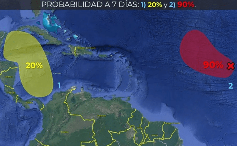 La nueva zona de baja presión podría desarrollarse en el Caribe Occidental. Actualmente, tiene un 20% de probabilidad de evolucionar a un ciclón en los próximos siete días, por lo que las autoridades estatales se mantienen en alerta para actuar ante cualquier eventualidad.