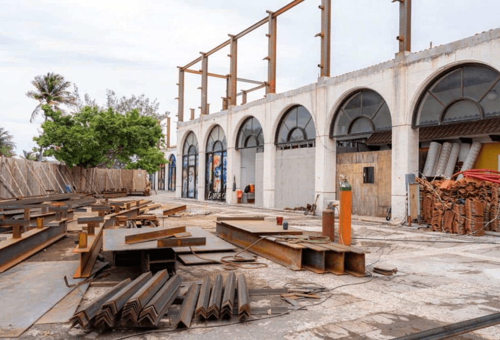 Indicó que ya se realizó la colocación de estructuras en las que serán instaladas unos paneles prefabricados y en la parte posterior de la plaza se construye un mirador al cual se podrá acceder mediante un ascensor.