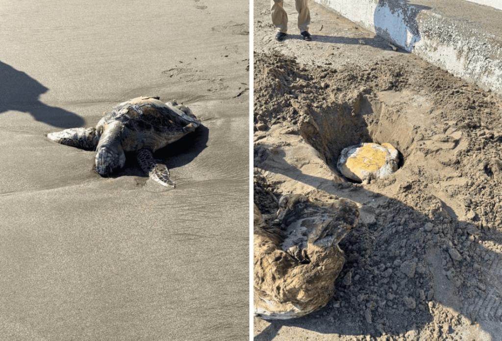 El jefe de guardavidas fue el encargado de realizar el levantamiento de la tortuga para enterrarla a uno cuántos metros del lugar donde fue localizada.