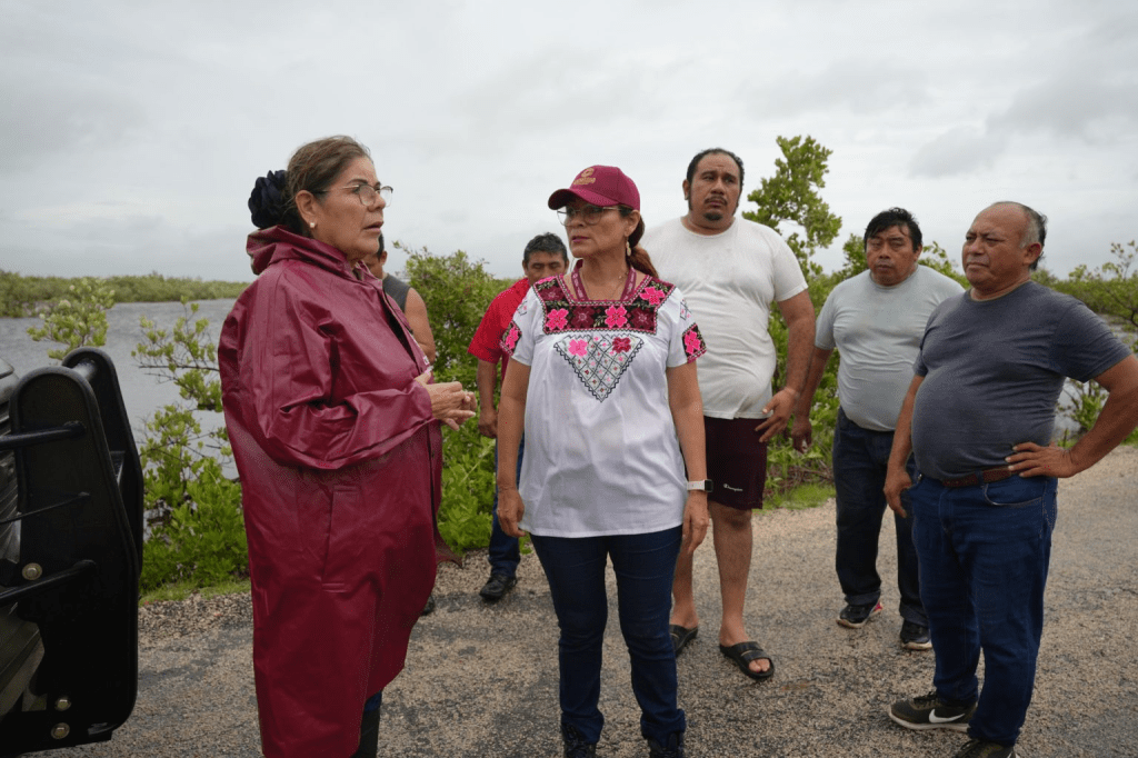 En un recorrido por las zonas afectadas del municipio de Calkiní, la titular de la Secretaría de Bienestar Liz Hernández, se dirigió a Tankuché para brindar apoyo a las familias afectadas por las condiciones meteorológicas causadas por el Huracán Milton que impiden a los pescadores salir a trabajar.