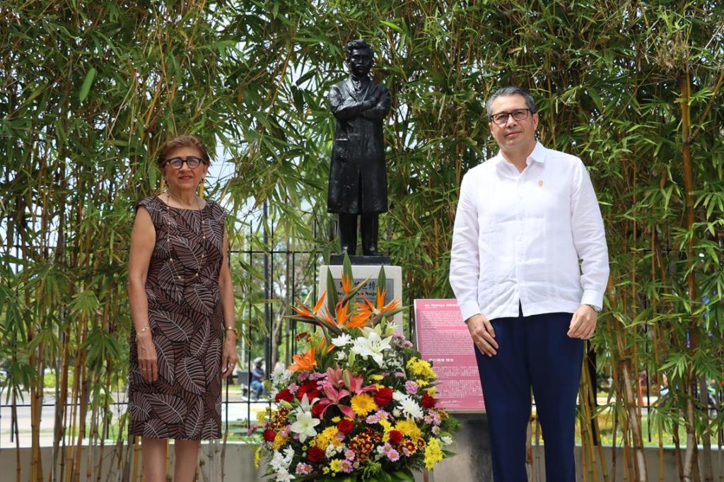 Antes de finalizar la ceremonia se colocó una ofrenda floral ante la efigie del ilustre científico japonés que da nombre al CIR-UADY, quien fue médico, bacteriólogo e investigador que trabajó en Yucatán a principios del siglo XX en las instalaciones del Hospital Agustín O’Horán.