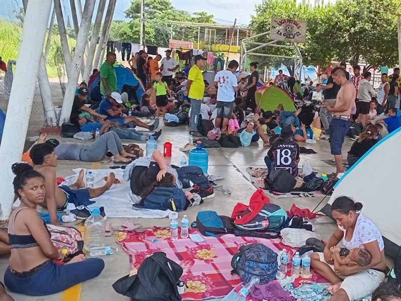 La Unidad Deportiva fue cerrada para prácticas deportivas y darle el apoyo a las personas migrantes que permanecerán dos días para avanzar el día jueves a la ciudad de Arriaga.