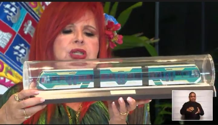 Layda muestra una réplica a escala del tren en el #Martes del Jaguar»