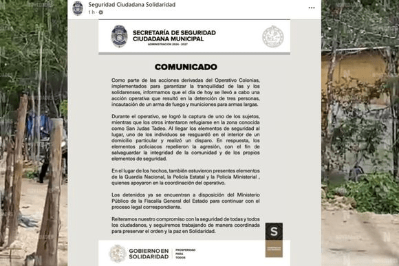 Posteriormente, por medio de un comunicado en la página oficial de Facebook de la Secretaria de Seguridad Ciudadana de Solidaridad emitió un comunicado en que se informó que en el sitio, fueron detenidas tres personas.