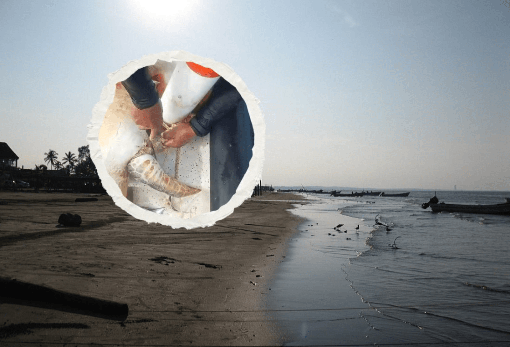 Los pescadores indicaron que ellos se encontraban realizando labores de búsqueda de peces cuando se percataron de la tortuga Lora, por lo que acudieron a rescatarla y con ello comenzar con un cuchillo a destruir la cuerda que estaba sobre su aleta, misma que estaba amarrada a una boya de una empresa estadounidense.