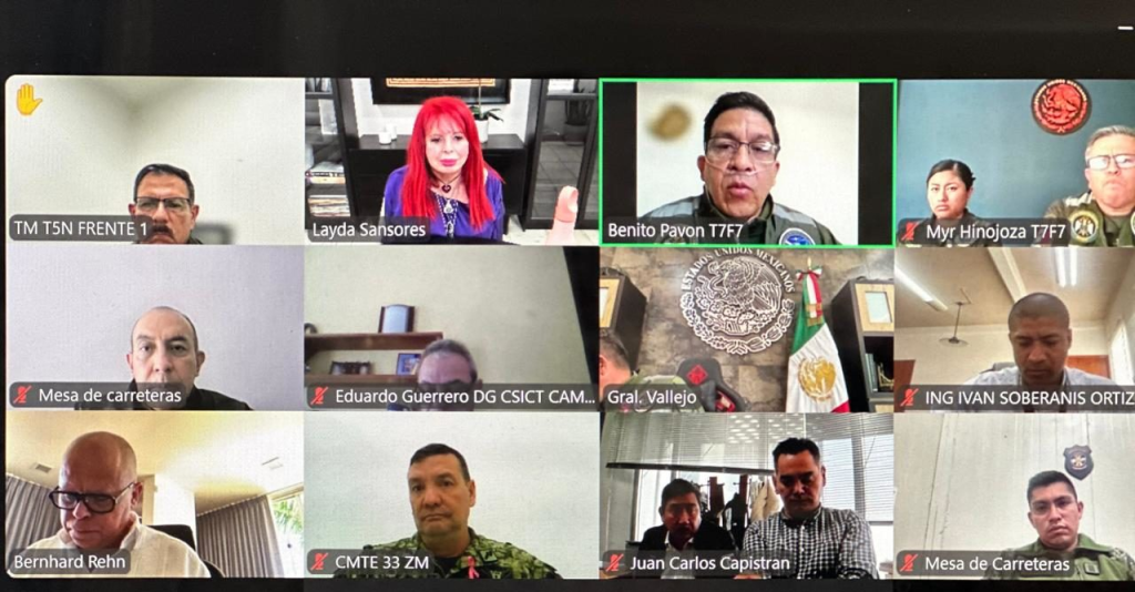 “Por instrucción del secretario de la Secretaría de la Defensa Nacional, el General Ricardo Trevilla Trejo, sostuvimos una reunión con el General Gustavo Ricardo Vallejo Suárez y su equipo, quienes nos dieron información de cómo van los trabajos de pavimentación de las carreteras en el estado”.