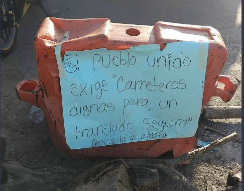 Cerca de las 20 horas del miércoles, un grupo de mujeres se plantó en la carretera del Golfo, a la altura de Atasta Pueblo (en Carmen), para bloquearla, argumentando el mal estado y alto grado de deterioro de la vía de comunicación; además de que se considere la realización del desvío carretero.