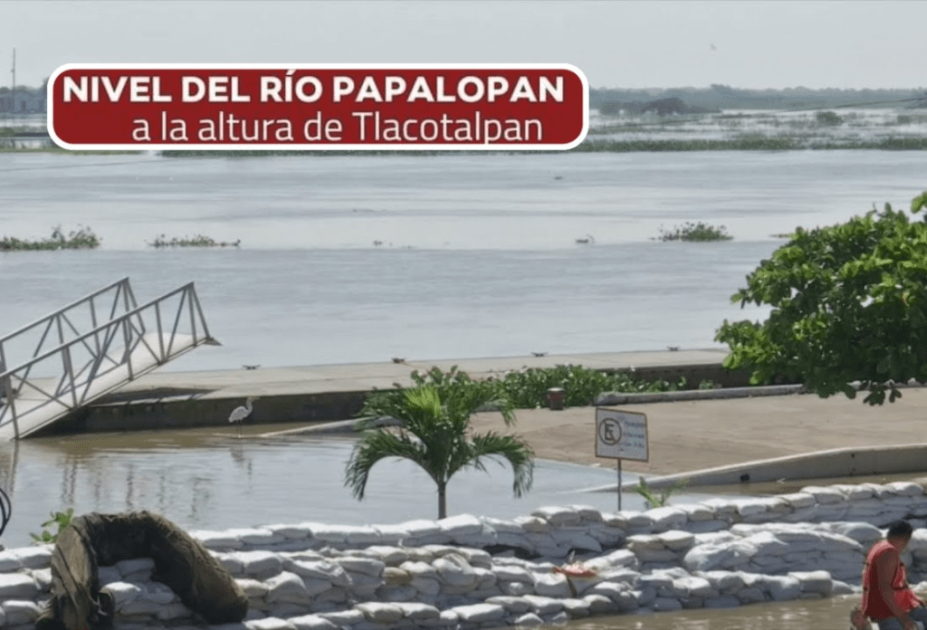 Este viernes 25 de octubre por la noche, se reportó el desbordamiento del río Papaloapan, a la altura de Tlacotalpan, donde elementos de la Secretaría de Marina, así como algunos voluntarios colocaron un muro de contención provisional con sacos de arena, esto para salva guardar la seguridad de la comunidad.