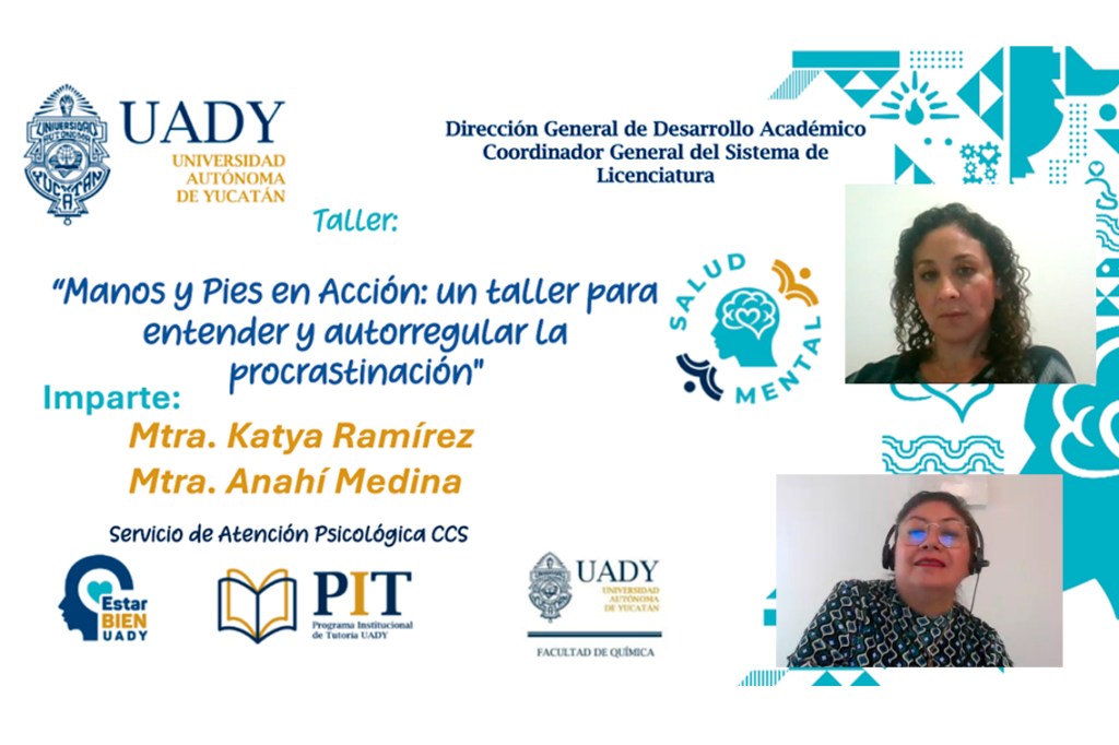 El 50 por ciento de los estudiantes aplaza frecuentemente la dedicación a sus estudios por realizar actividades de mejor interés para ellos, manifestó la especialista del Programa Institucional Estar Bien UADY, Katya Ramírez Centeno, durante la impartición de “Manos y pies en acción: un taller para entender y autorregular la procrastinación”.