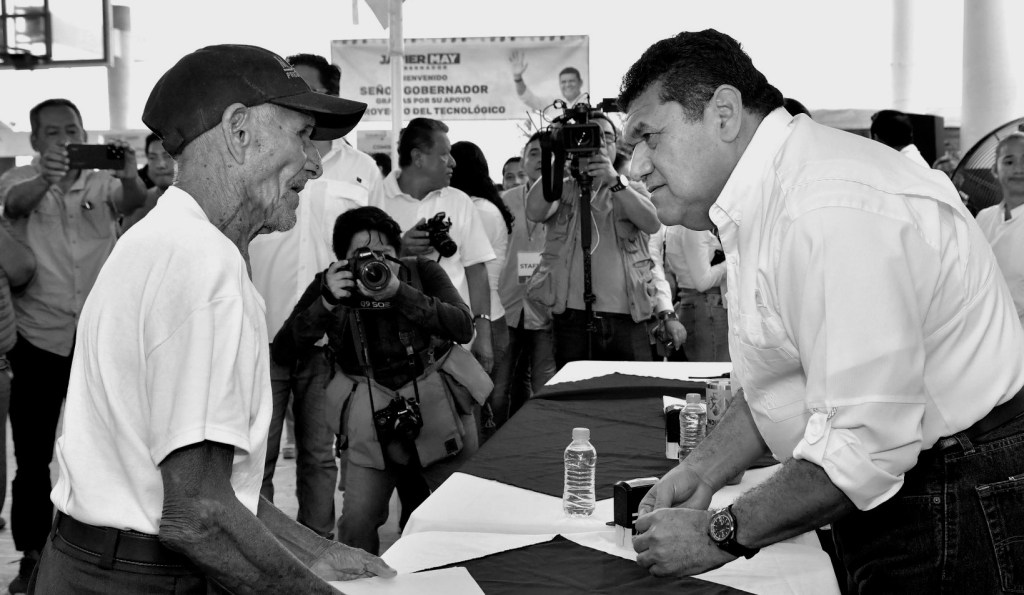 Javier May, escucha a cada ciudadano por espacio de tres minutos la petición o queja; de inmediato los canaliza hacia el secretario correspondiente de la petición, de inicio atenderla y luego resolverla.