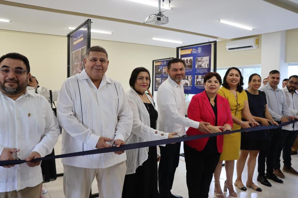 Posteriormente las autoridades universitarias se trasladaron a la entrada principal del plantel para develar la placa conmemorativa al cuadragésimo aniversario; también, inauguraron la exposición fotográfica “Raíces y trayectorias: 40 años de la historia de la FEDU”.