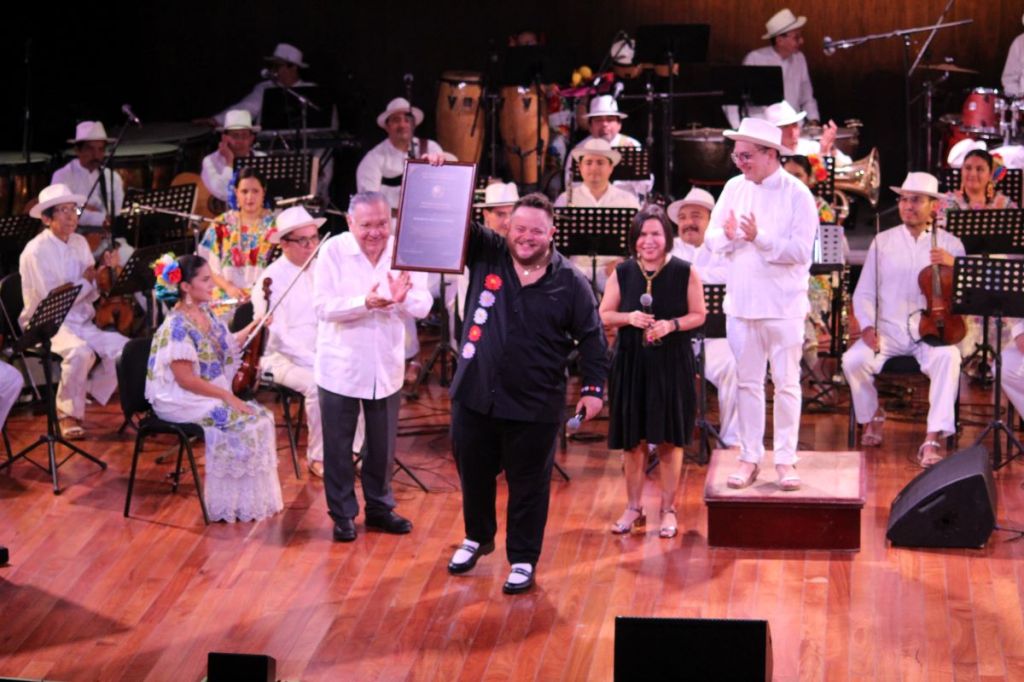 Con el acompañamiento de la Orquesta Típica Yukalpetén (OTY), bajo la batuta del maestro Pedro Carlos Herrera López, el recipiendario deleitó, con su estilo y voz, al público con las canciones “La fuente” de Pastor Cervera, “Quisiera ser golondrina” de Wello Rivas, “Ama” de Luis Demetrio, “Yo sé que volverás” de Luis Pérez Sabido y Armando Manzanero, la cual interpretó a dueto con Alfonso Alquicira, vocalista de la Big Band Jazz de México; el repertorio continuó con «No», también de Armando Manzanero y cuya interpretación motivó una ovación de pie.