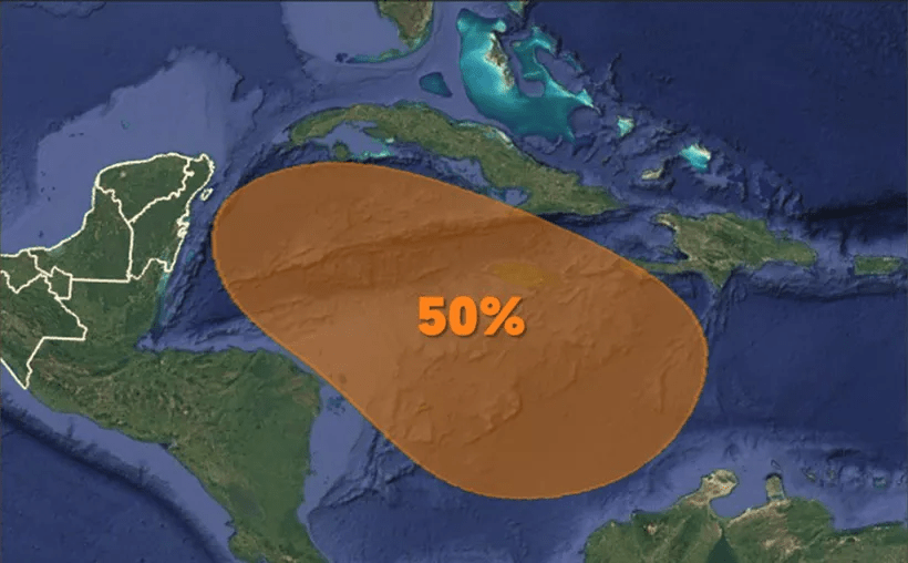 Hasta el momento el fenómeno hidrometeorológico incrementó a 50% su probabilidad de evolucionar a un sistema ciclónico en los próximos siete días.