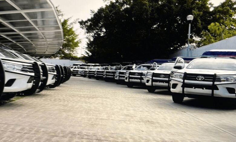 Precisó que, a través de la dependencia que encabeza, en 2023 se realizó la adquisición de 54 patrullas equipadas y balizadas, de las cuales 48 son de tipo Pick Up Hilux y 6 Pick Up Frontier, las cuales fueron entregadas de forma directa y transparente a un total de 40 municipios, la mayoría durante el mes de febrero de este año.