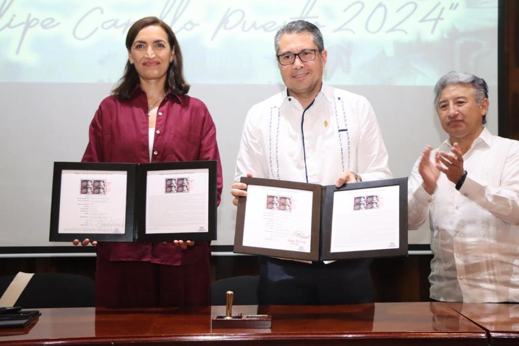 En tal sentido, expresó que es por todo esto la importancia de este acto de cancelación de timbre filatélico conmemorativo denominado “2024 Año de Felipe Carrillo Puerto” que enmarca el cumplimiento al ordenamiento de que toda emisión conmemorativa para su venta al público en cada entidad se inicie, con la ceremonia protocolaria de cancelación del primer día de emisión del timbre postal.