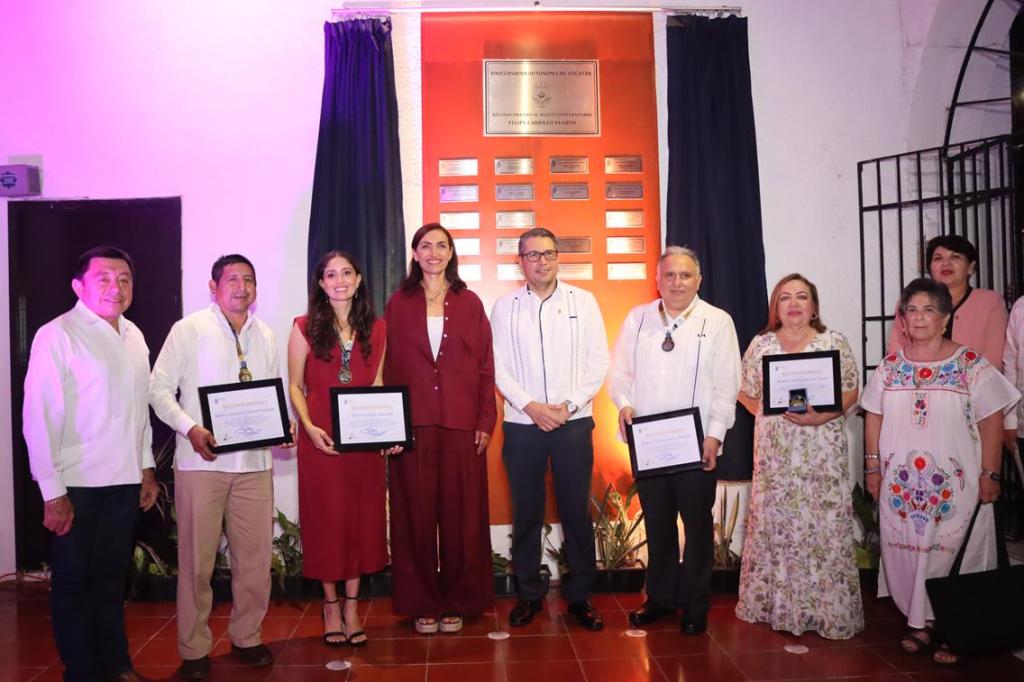Posterior a la cancelación del sello postal realizada por el rector de la UADY, Carlos Estrada Pinto y la secretaria de Investigación, Innovación y Educación Superior, Geovanna Campos Vázquez, se llevó a cabo la entrega al reconocimiento Felipe Carrillo Puerto 2024 al Personal Universitario Distinguido.