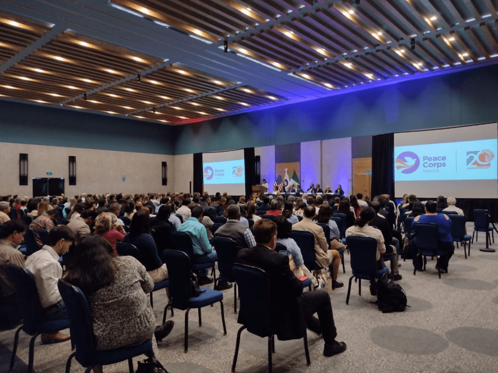 Reunión en Querétaro, con asistentes y miembros de Peace Corps México al frente.